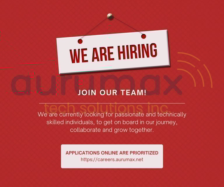 Aurumax Tech Solutions Inc. is looking for passionate and driven individuals who want to be part of our growing team.Whether you’re an experienced professional or a fresh graduate eager to start your career, we’d love to meet you!