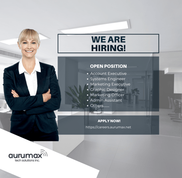 Aurumax Tech Solutions Inc. is holding an Open House Hiring for passionate and driven individuals who want to be pioneer employees in our growing team. Whether you’re an experienced professional or a fresh graduate eager to start your career, we’d love to meet you!